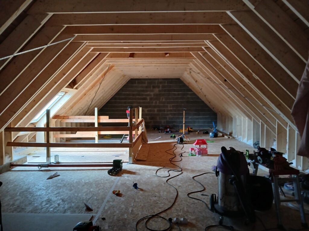 Voila deux photos avant / après d’un chantier réalisé dans la Finistère et qui démontrent que les combles non aménageables sont aménageables avec la Poutrespace !